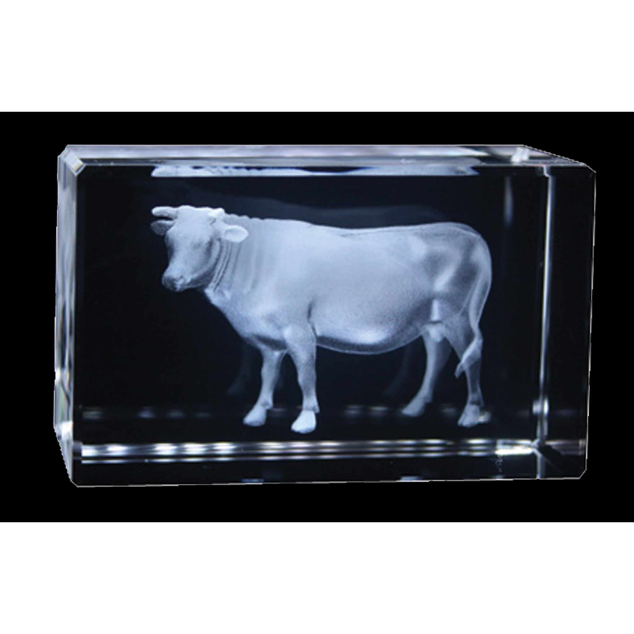 Ox zodiac laser-etched crystal block. Birth years 2009, 1997, 1985, 1973, 1961, 1949