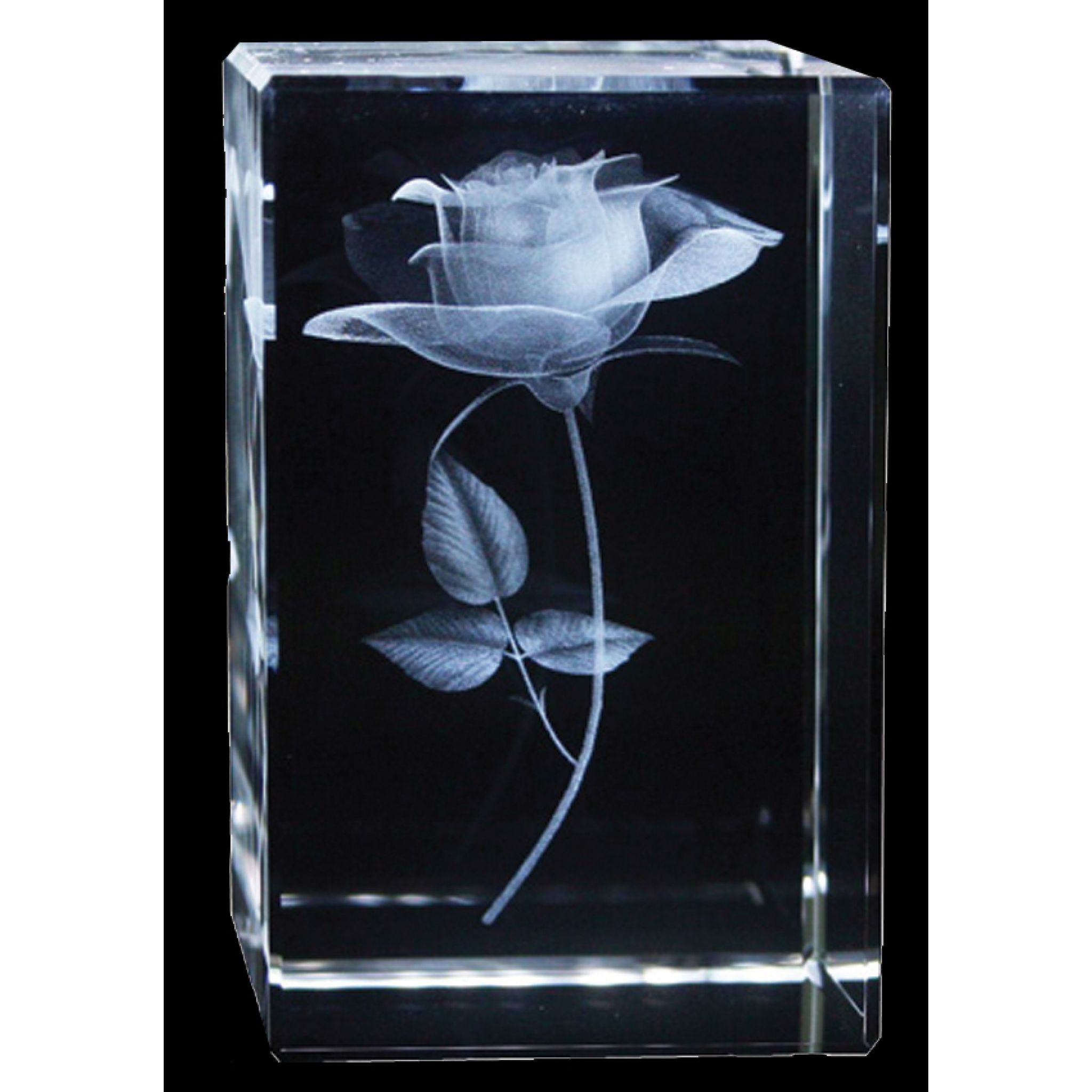 A Rose Bud, a symbol of love in a laser etched crystal block
