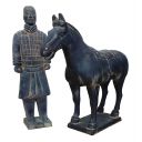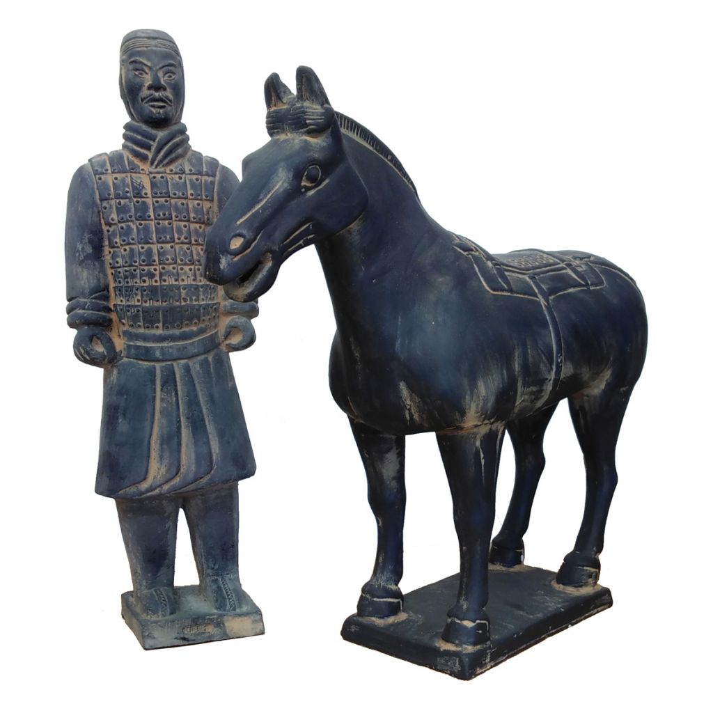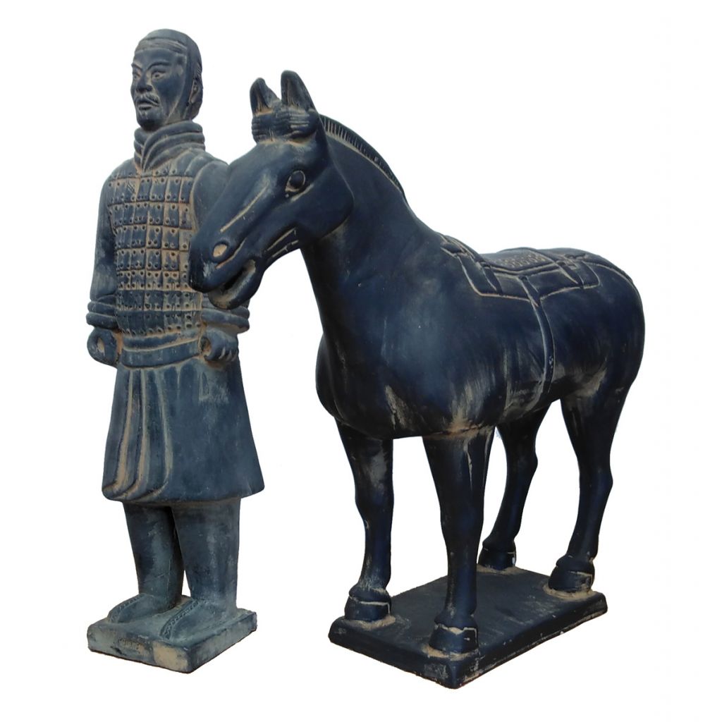 Terracotta cavalryman with horse. Found in significant numbers in the tomb of Emperor Qin Shi Huang these pieces are both around 35cm high and have a fine dusty clay coating.