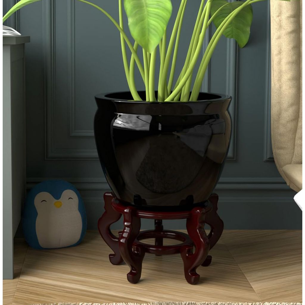 Fish bowl stand with five gracefully curved supports in a dark rosewood-lacquered finish. Offering classic oriental display for ceramic fish bowls, vases, planters, etc. Suitable for an item with base diameter up to 24cm.