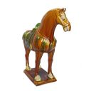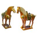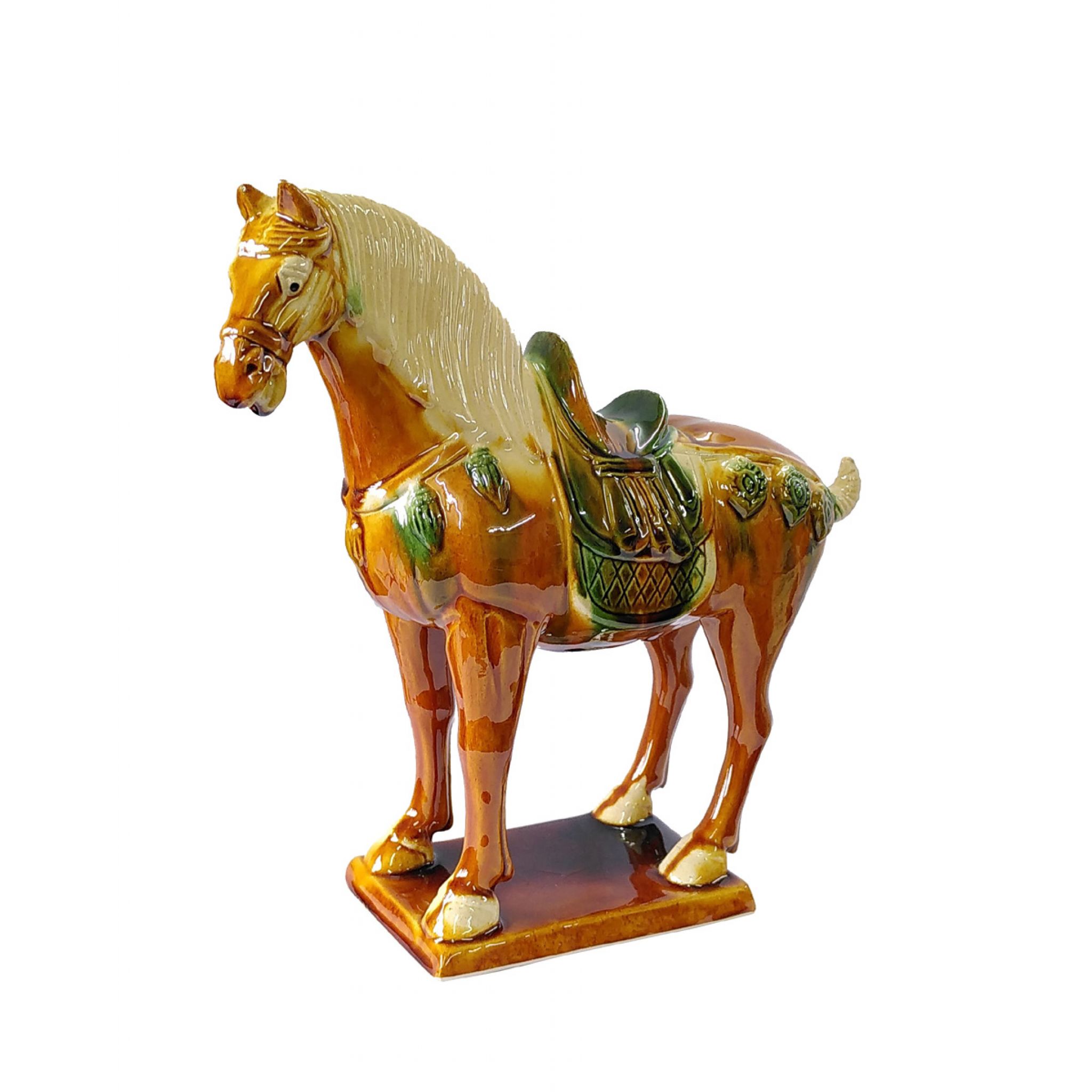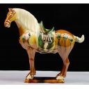Tang Horse with timeless appeal. Their stylised arched necks, pricked ears, brushed mane and heavy torsos exude confidence, distinction, power and charm. Three colour Tang san-cai glossy glaze.